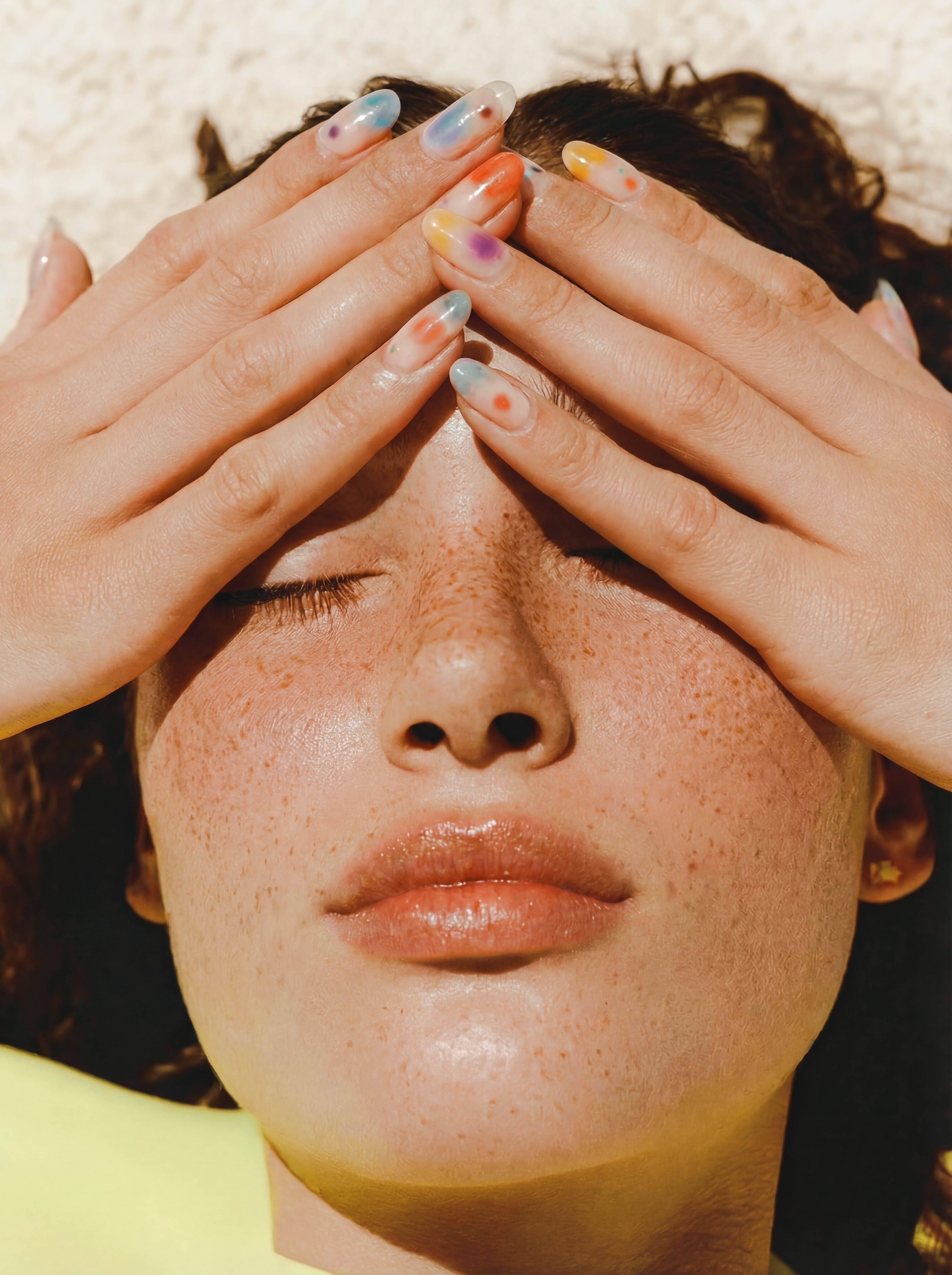 Semi-cured gel strips from Korea, refined in Scandinavia. They're soft and flexible when you apply them, so they actually wrap around your nail shape. Cure them under our mini LED lamp for 45 seconds (or just let the sun do its thing), and they set into a glossy, chip-resistant finish that lasts.