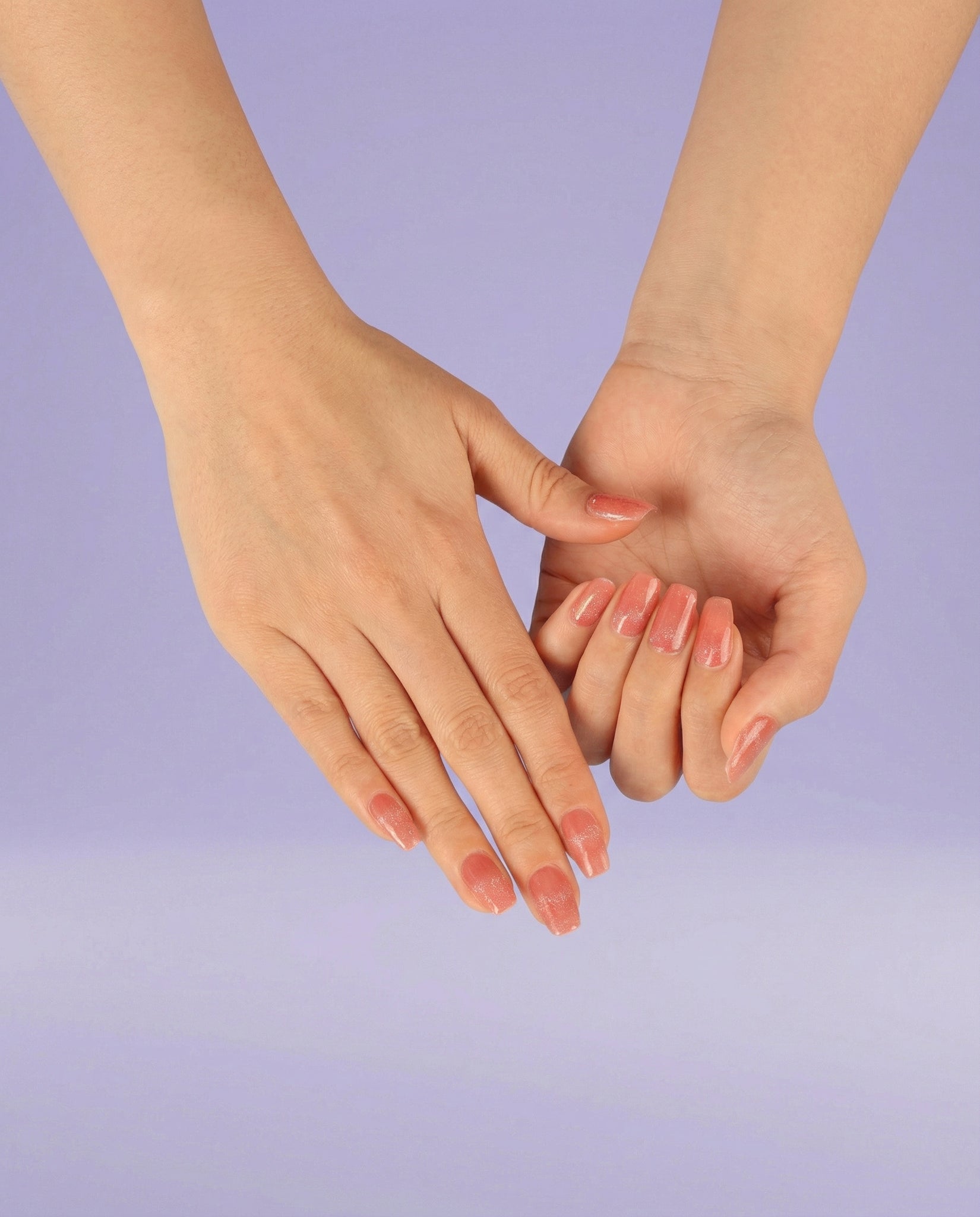Coral that actually does something. A warm flush with a soft shimmer that sits like light, not glitter — sheer enough for a Tuesday, noticeable enough that someone will ask.