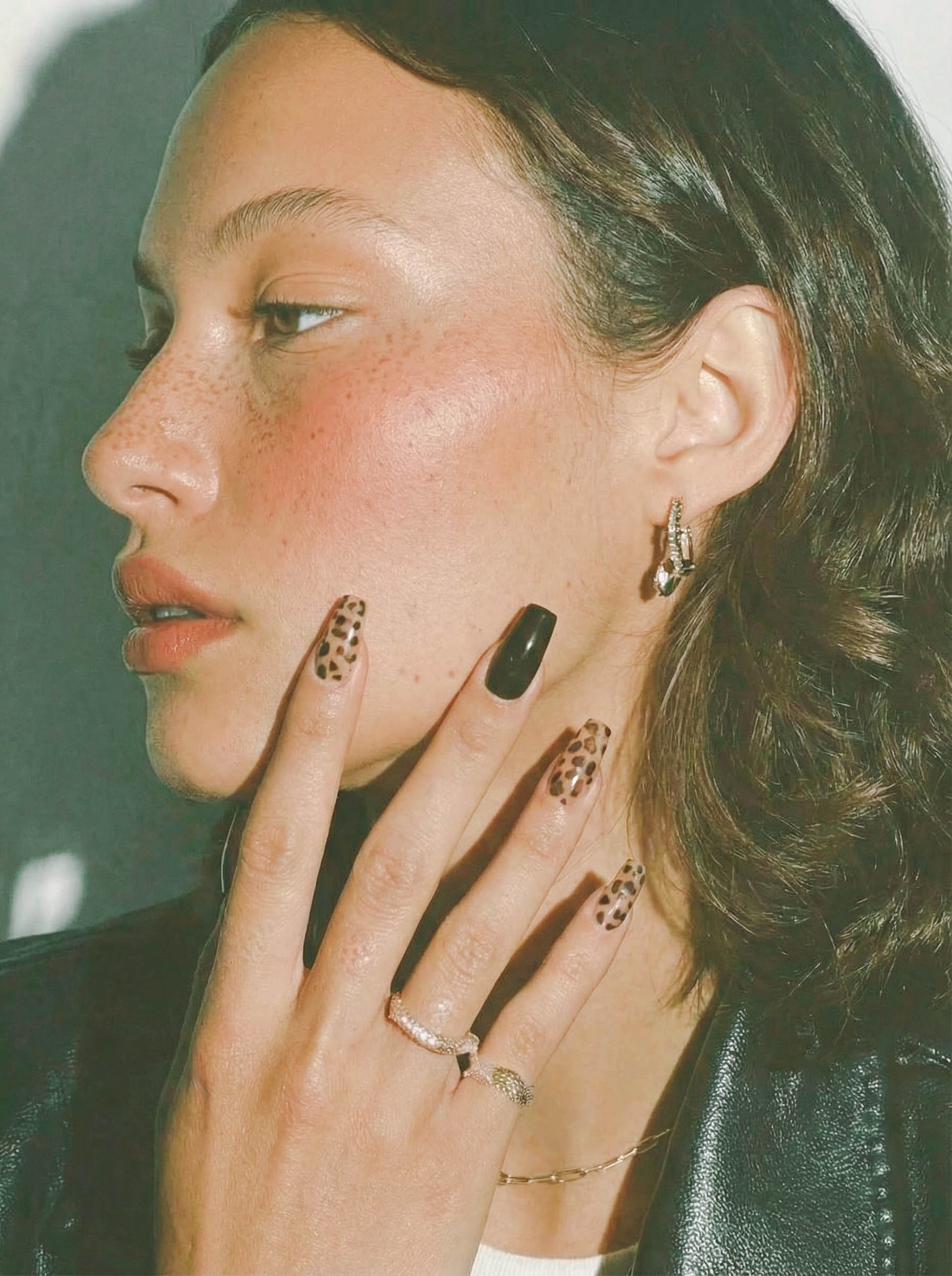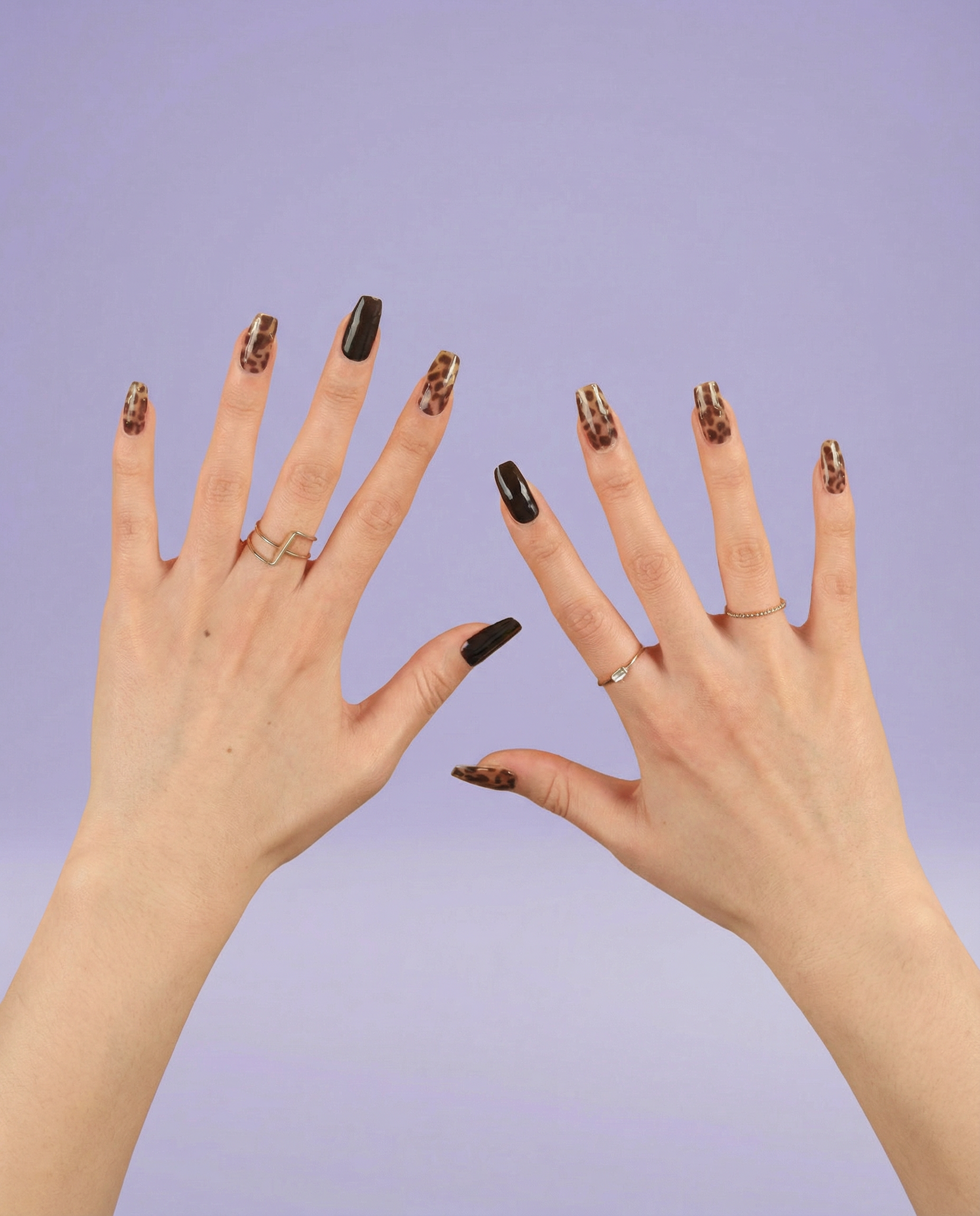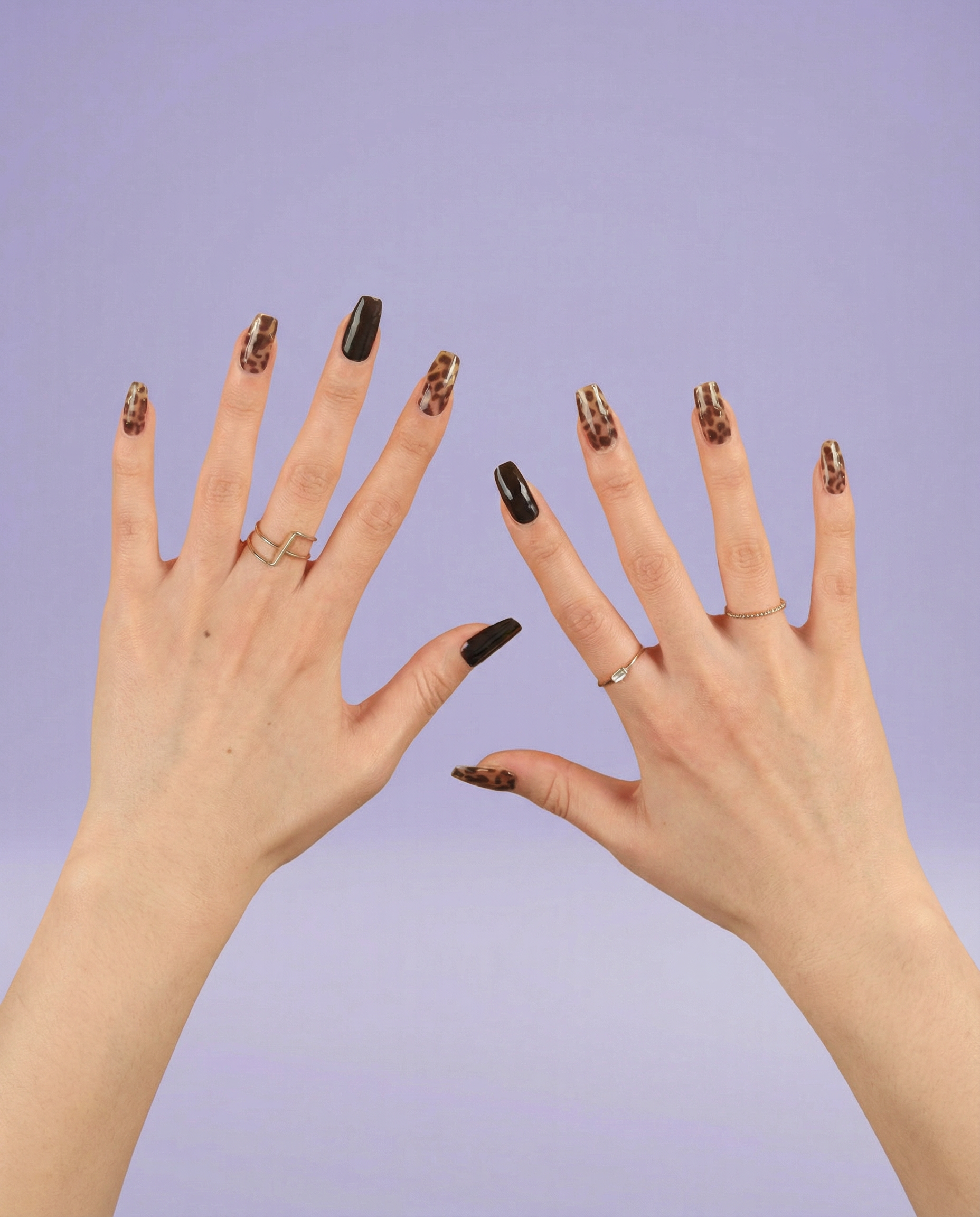The feeling of walking into a room and owning it without trying. Glossy black paired with warm leopard print and flecks of gold — Mellow Savannah is for the days you want to feel a little untamed. Confident. Like you dressed for yourself and no one else.