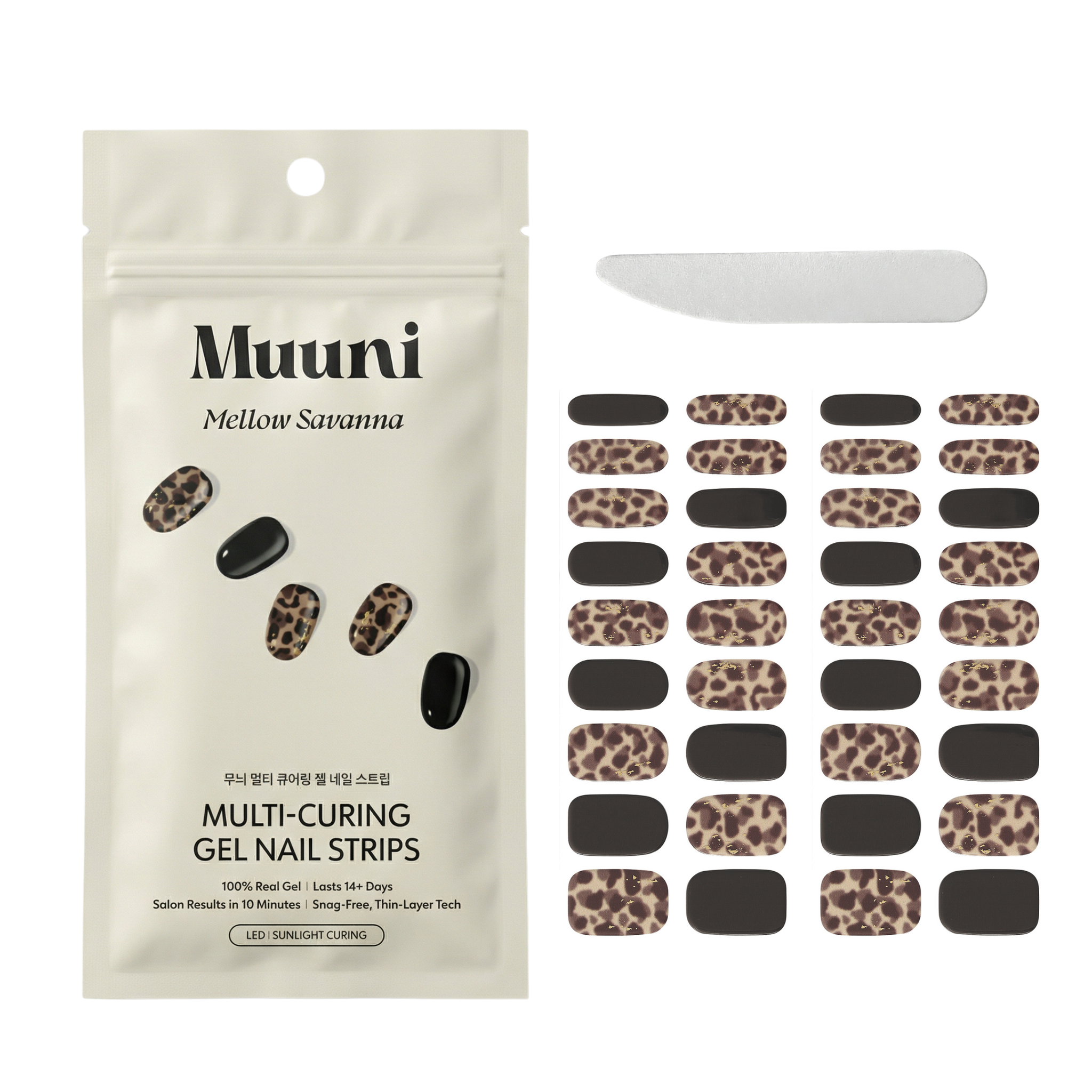 • 2 sheets of gel nail strips (36 pieces total — multiple sizes to fit all nails)