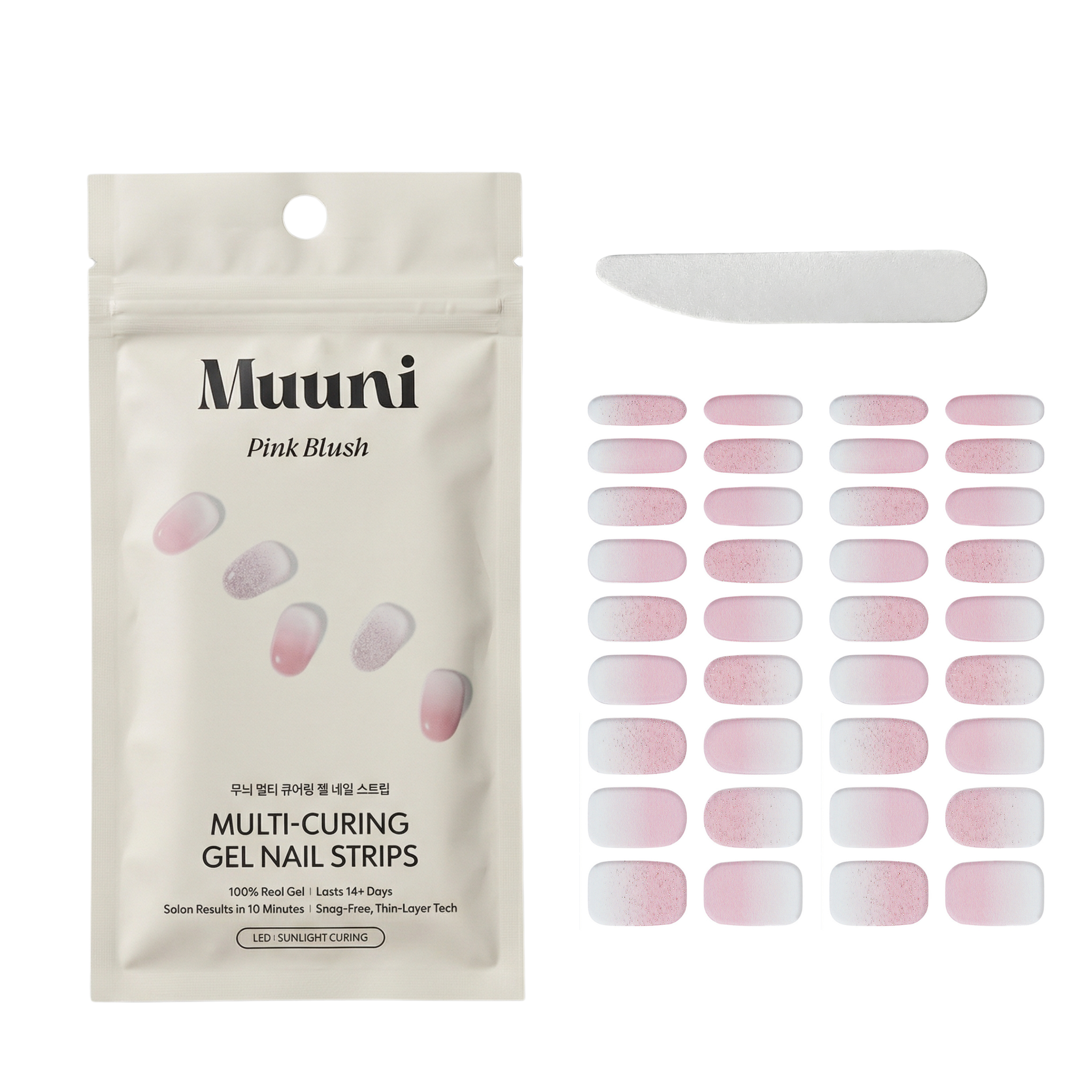 • 2 sheets of gel nail strips (36 pieces total — multiple sizes to fit all nails)
